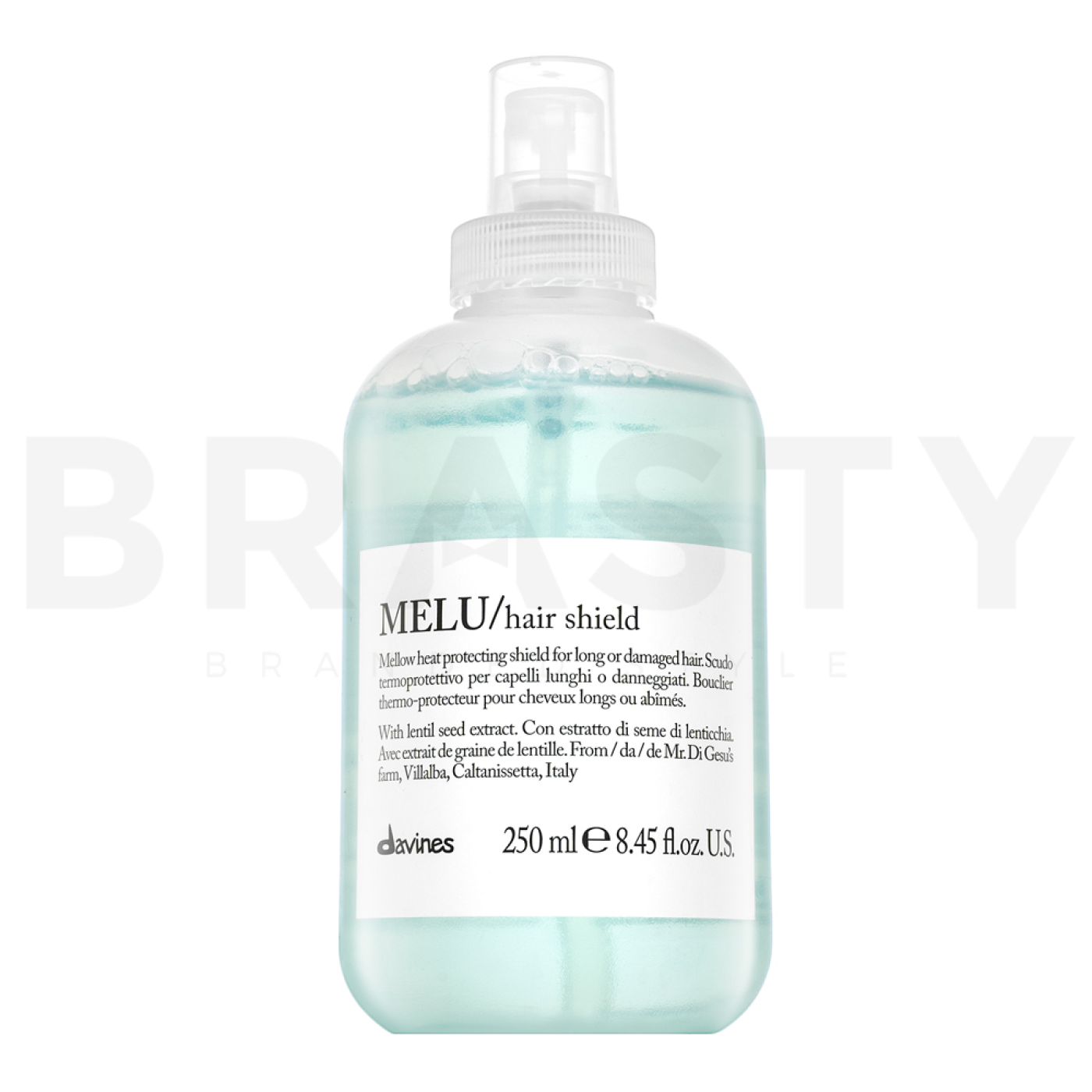 Davines Essential Haircare Melu Hair Shield е революционен защитен спрей, който ще стане незаменим помощник за всички жени, които жадуват за здрава и силна коса. Тази уникална формула от колекцията Essential Haircare е специално създадена за отслабена, чуплива и увредена коса, която се нуждае от допълнителна грижа и защита. Спреят създава невидим щит, който защитава косата от топлина при стилизиране и едновременно я укрепва и хидратира.