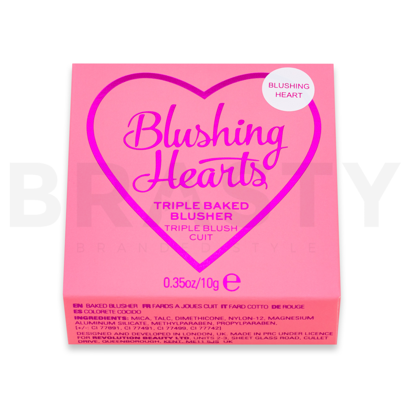 Марка I Heart Revolution е известна със своите иновативни продукти, които съчетават игрив дизайн с високо качество. Ружът Blushing Heart е създаден, за да придаде на кожата ви здрав и свеж вид. Практичната опаковка във формата на сърце не само радва окото, но и улеснява нанасянето и пренасянето. Идеален избор за романтични вечери или елегантен дневен грим.