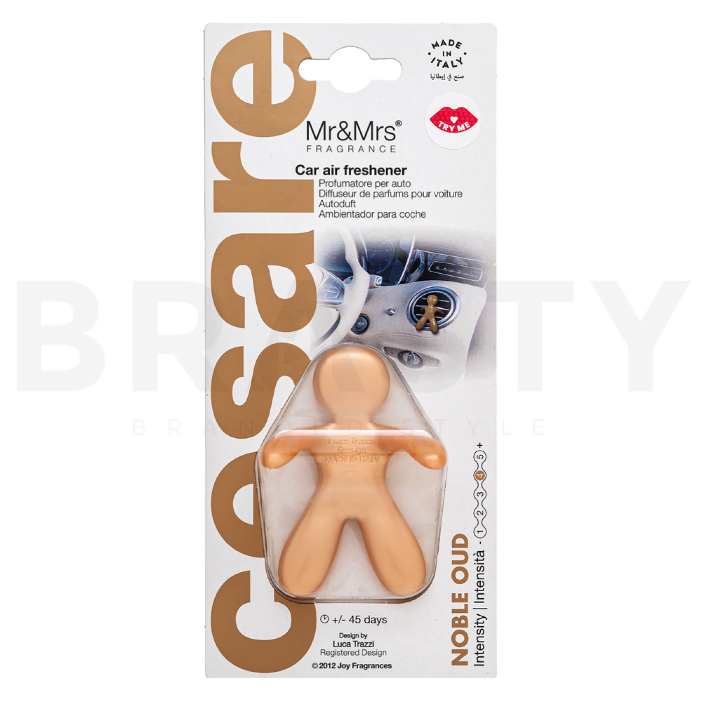 Този ароматизатор е проектиран да осигурява дълготраен аромат, който постепенно се освобождава и гарантира постоянна свежест в колата ви. Дървесният аромат Noble Oud е унисекс, което означава, че е подходящ за всеки, който оценява изтънчени и дълбоки аромати. Благодарение на елегантния си дизайн, Cesare лесно се прикрепя към вентилационната решетка, където се превръща в незабележима, но ефективна част от интериора на колата ви. Този аромат е перфектен избор за тези, които искат да придадат на колата си нотка на ексклузивност и стил.