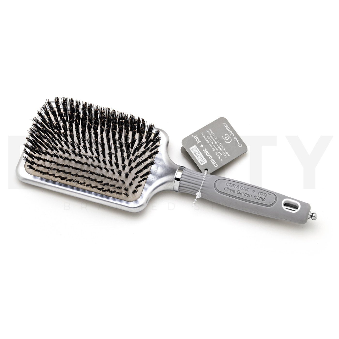 Olivia Garden Ceramic+Ion XL Boar Brush Large е изключителна четка за коса, която комбинира модерна технология с традиционни материали. Тази четка е част от реномираната колекция Ceramic+Ion, известна със способността си да осигурява перфектна грижа и блясък на косата. Марката Olivia Garden е синоним на качество и иновация в света на козметиката за коса и тази четка не е изключение.