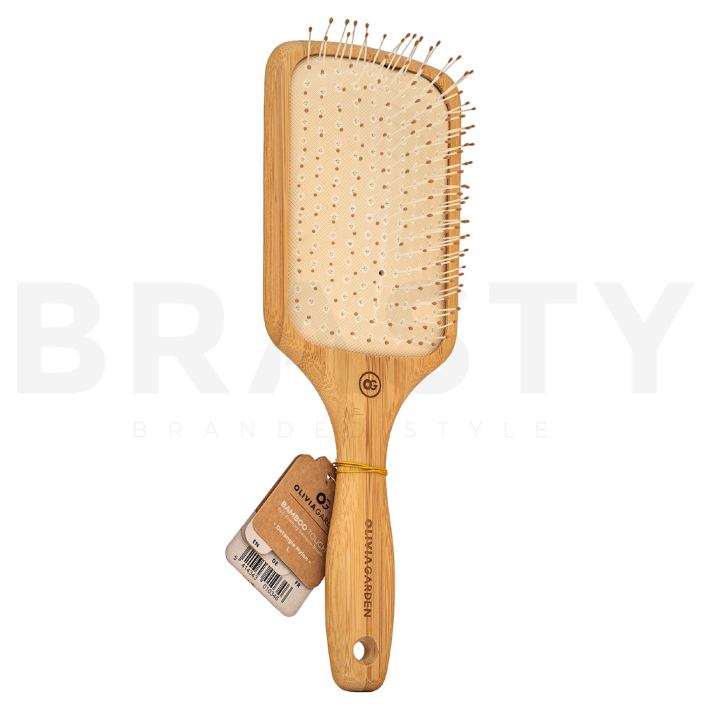 Открийте магията на естествената четка Olivia Garden Healthy Hair Bamboo Touch Eco-Friendly Detangle Nylon Bamboo Brush Large. Тази четка е създадена, за да предостави на вашата коса най-добрата грижа с оглед на околната среда. Марката Olivia Garden е известна със своята иновативна серия Healthy Hair, която набляга на здравето на косата и екологичната устойчивост. Четката е изработена от бамбук, който е възобновяем източник, а нейните найлонови четина са идеални за нежно разресване на косата без увреждане.