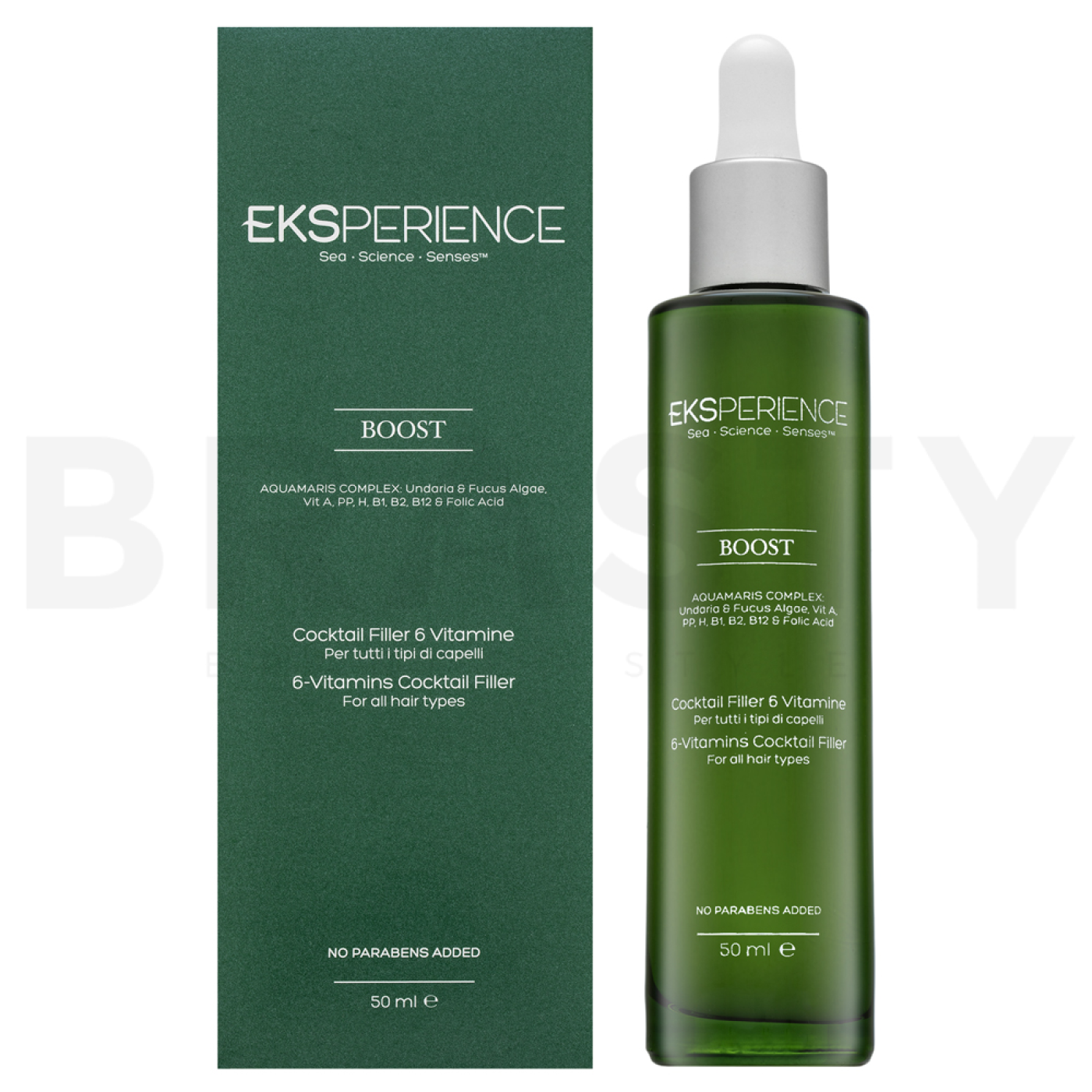 Eksperience Boost е подколекция, която се специализира в доставянето на енергия и жизненост на косата. Този мултивитаминен коктейл е обогатен с важни витамини и минерали, които помагат за възстановяване на здравето и блясъка на косата. Идеален е за използване преди важни събития, когато искате косата ви да изглежда най-добре. Благодарение на своята лека и бързо абсорбираща се формула, не утежнява косата и я оставя копринено мека и сияйна.