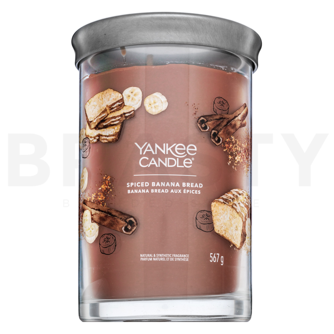 Yankee Candle е емблематична марка, която внася магията на ароматите в домовете ви вече десетилетия. Нейните ароматни свещи са известни с качеството и интензивността си, които могат да преобразят атмосферата на всяко пространство. Yankee Candle Tumbler Spiced Banana Bread е едно от тези съкровища, което ще ви пренесе в света на сладки и подправени нотки. Тази свещ тежи 567 г и е идеална за тези, които обичат аромата на прясно изпечен бананов хляб с нотка подправки. Нейният памучен фитил осигурява чисто и равномерно горене, което я прави перфектен избор за дълги вечери с книга или при релаксация с приятели.