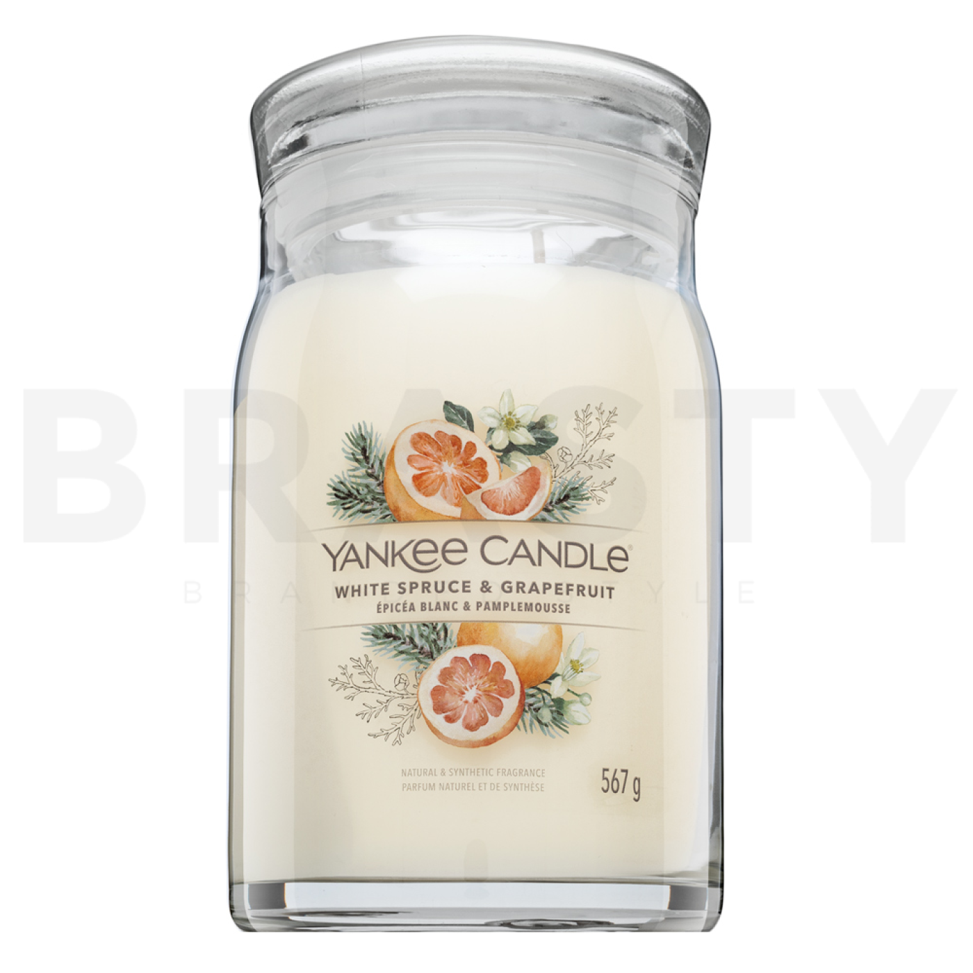 Yankee Candle е емблематична марка, известна със своите качествени ароматни свещи, и моделът White Spruce & Grapefruit не е изключение. Тази свещ с тегло 567 г е перфектното допълнение за вашия дом, предлагаща освежаващ цитрусов аромат с нотка на бял смърч. Идеална е за зимни вечери, когато искате да създадете уютна атмосфера, изпълнена със свежест и елегантност. Yankee Candle е известна със своя акцент върху качеството и дългото време на горене, което гарантира, че ще се насладите на този аромат за много часове.